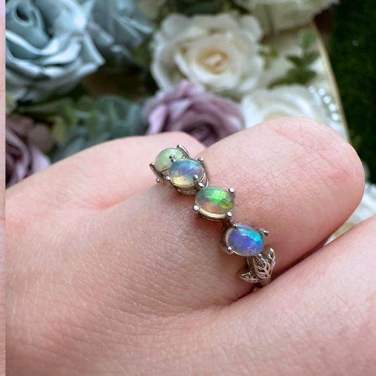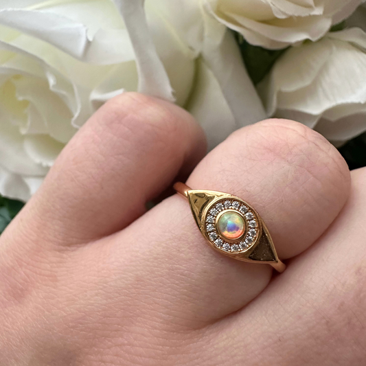 Eye of the Universe Adjustable Gold Simulated Opal Evil Eye Ring