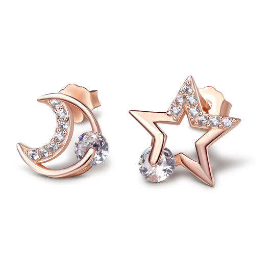 Moon and Star Mismatched Stud Earrings