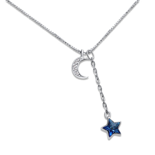 Wish Upon a Star Crescent Moon Blue Crystal Star Necklace