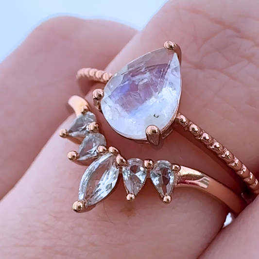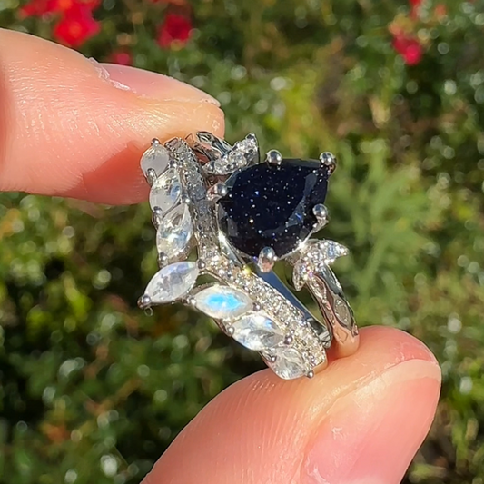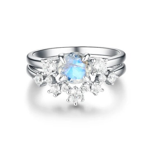 Winter Nights Blue Sandstone and Rainbow Moonstone Ring Set
