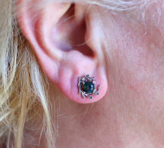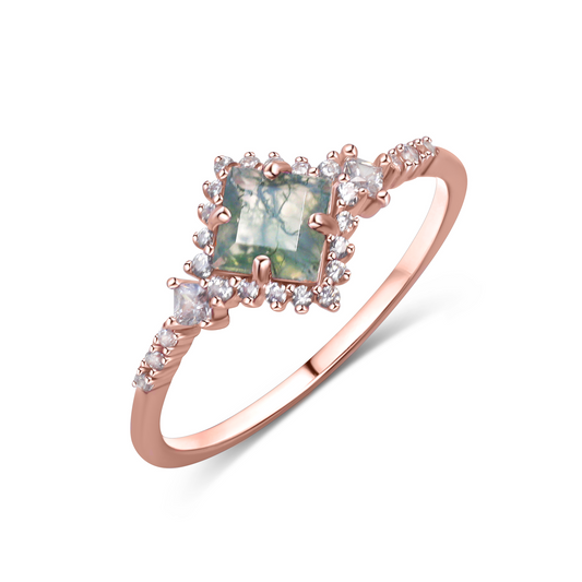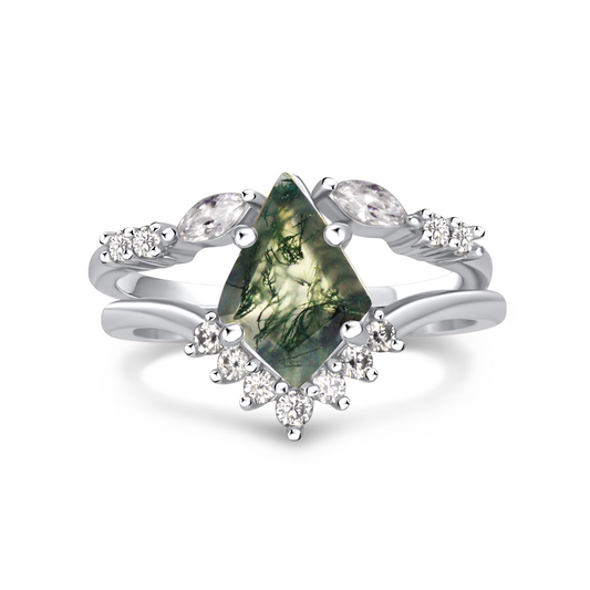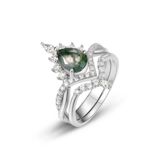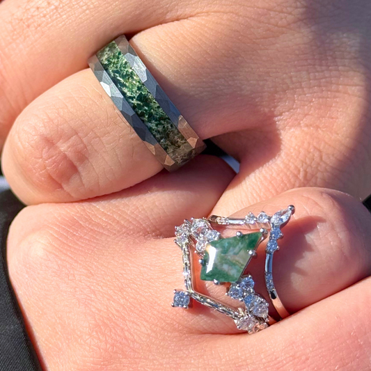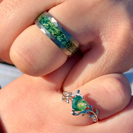 Entangled Love Heart Moss Agate and Tungsten Couples Ring Set