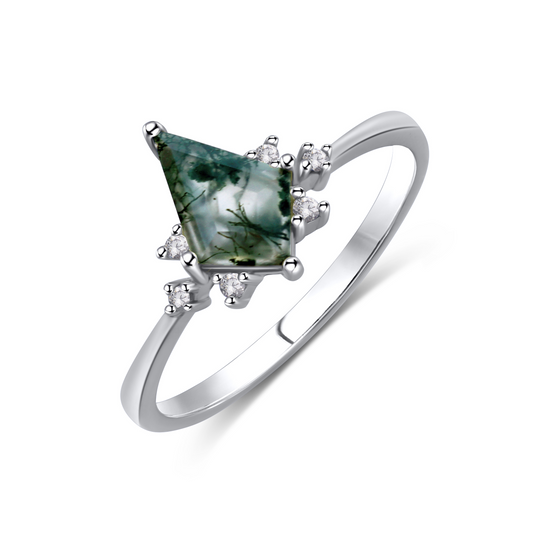 Hammered Silver Crushed Moss Agate Ring - 8mm Hammered Tungsten Ring Band