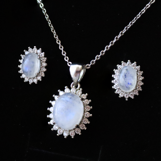 Sunflower Rainbow Moonstone Necklace and Earrings Set