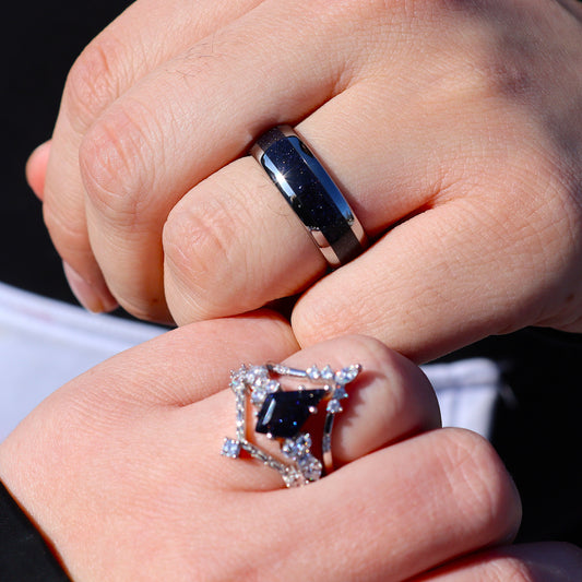 Court of Stars Blue Sandstone Couples Ring Set - 925 Sterling Silver and Tungsten Carbide
