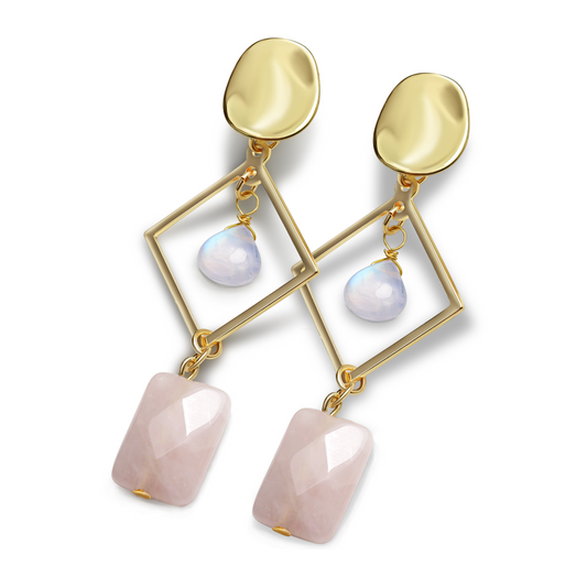 Moonstone and Rose Quartz 14k Gold Geometric Drop Earrings