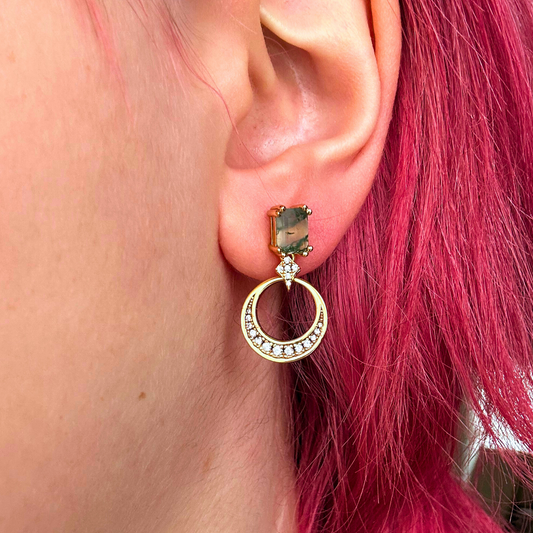 Morning Sun Moss Agate Gold Drop Earring Hoops