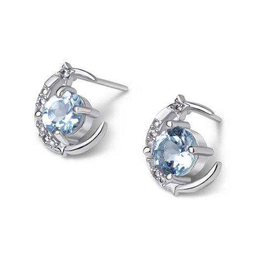 Sky Blue Topaz Silver Crescent Moon Earrings