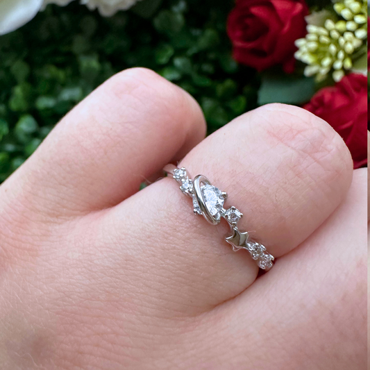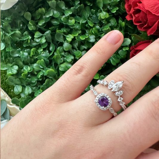 Cosmic Center and Queen of Stars Amethyst Ring Set