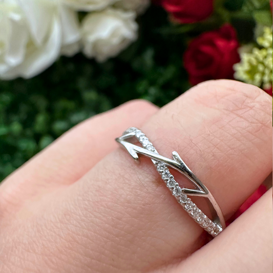 Tree Branch Crystal Stacking Ring Band